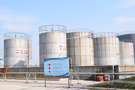 公司占地42畝,現(xiàn)已投產(chǎn)DMF回收處理車間和聚氨酯樹脂車間。DMF回收處置生產(chǎn)線,擁有國內(nèi)水平及優(yōu)良的產(chǎn)品檢測分析系統(tǒng),日處理能力達(dá)到300噸以上,并有4個1000M3的廢液儲罐,及1個1000M3及3個300M3二甲基甲酰胺儲罐等儲存設(shè)施。